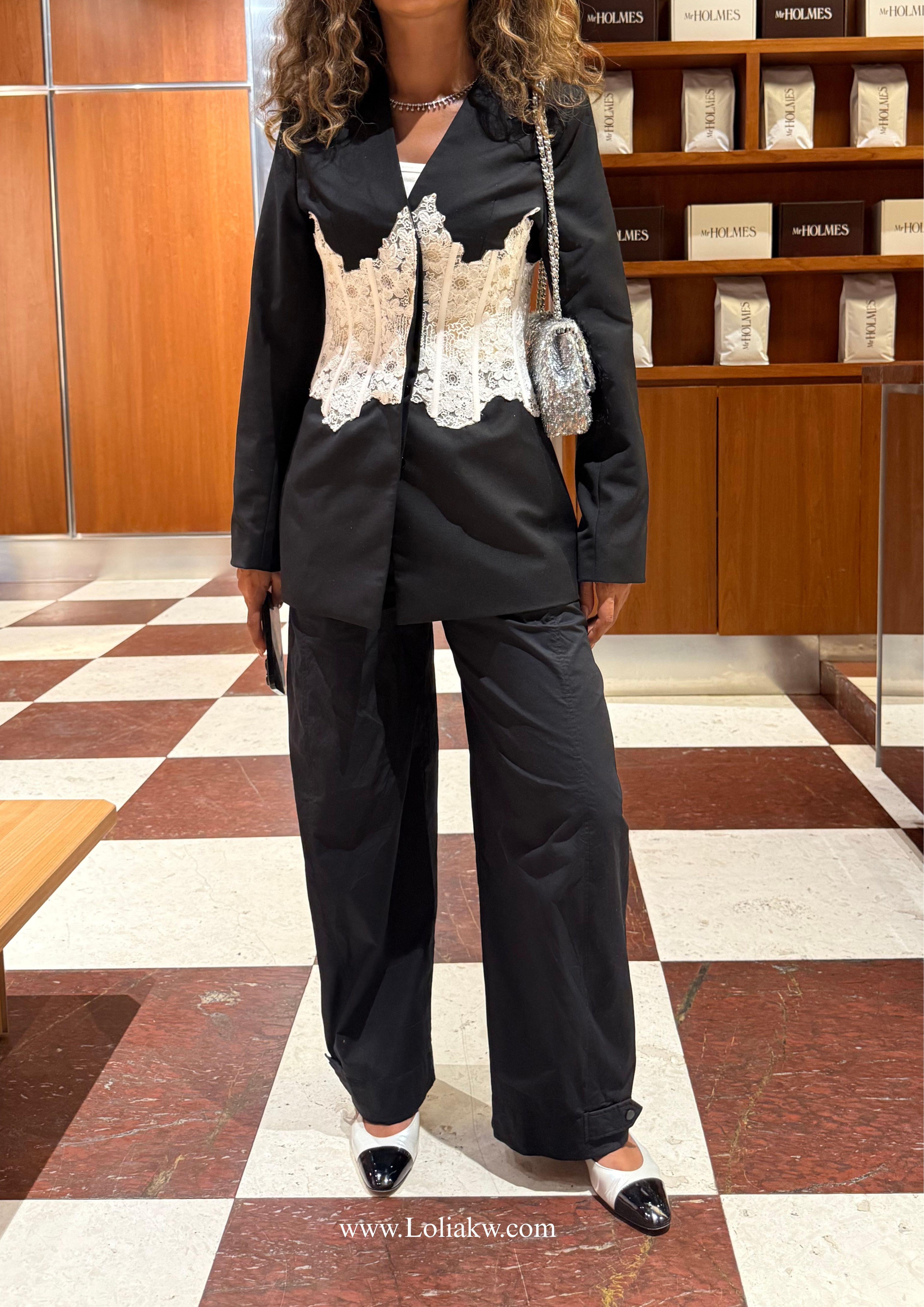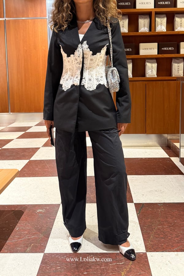 - Color: black with white lace