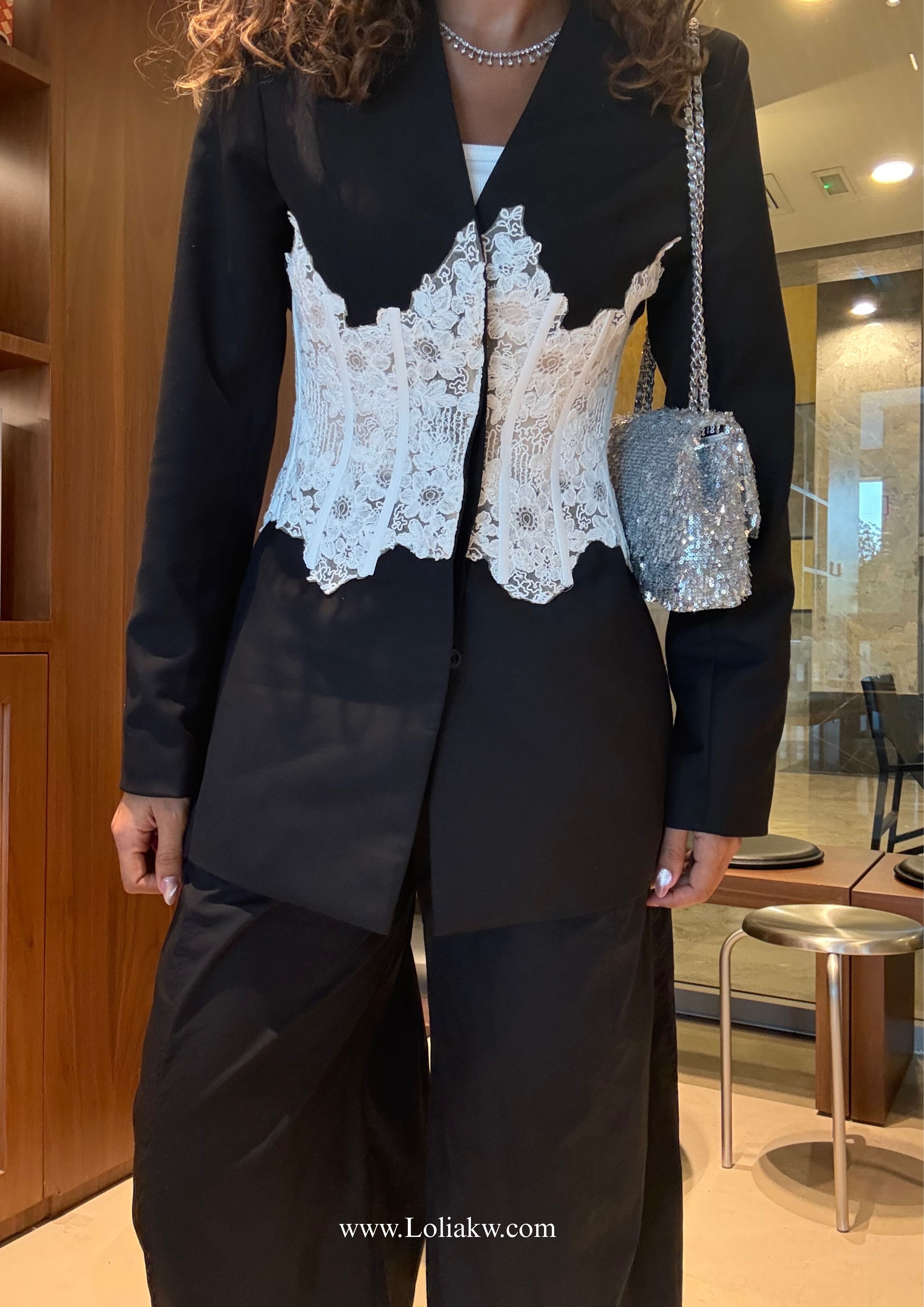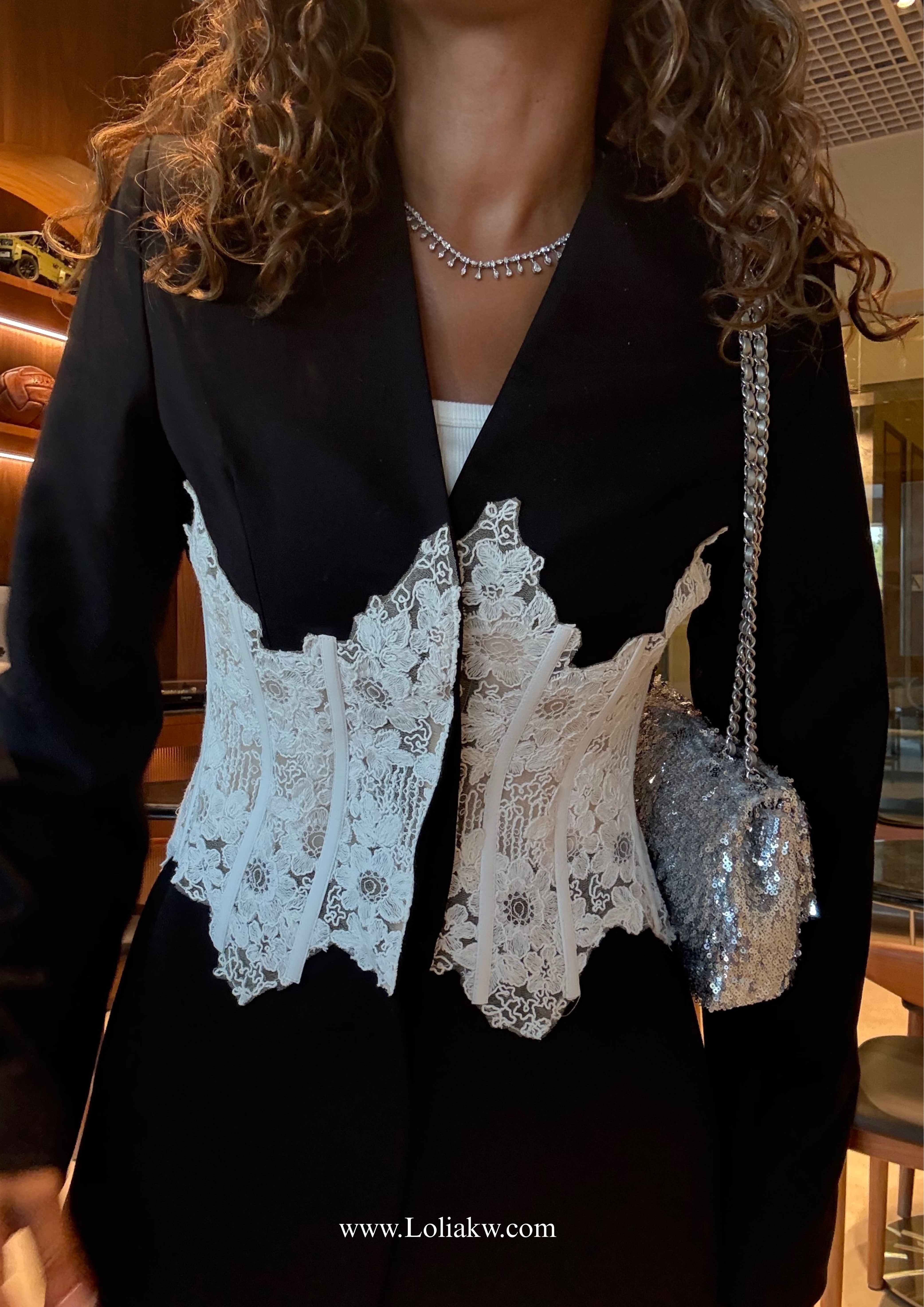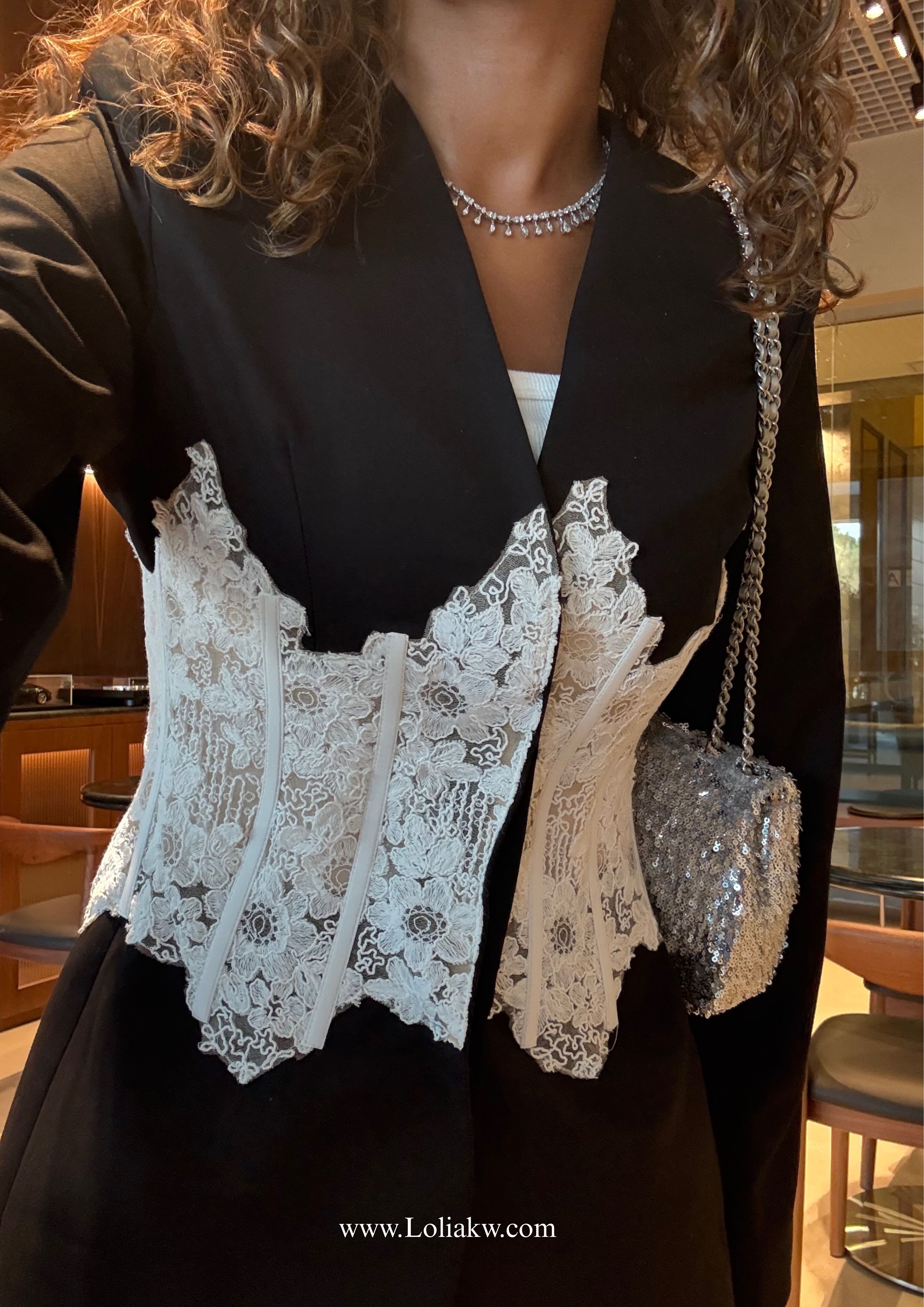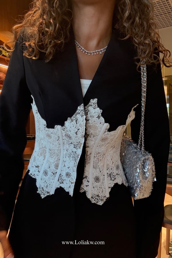- Textiles: crepe with corset lace